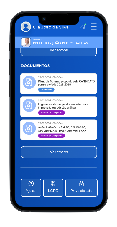 Ações, fotos, vídeos e demais materiais da sua campanha.